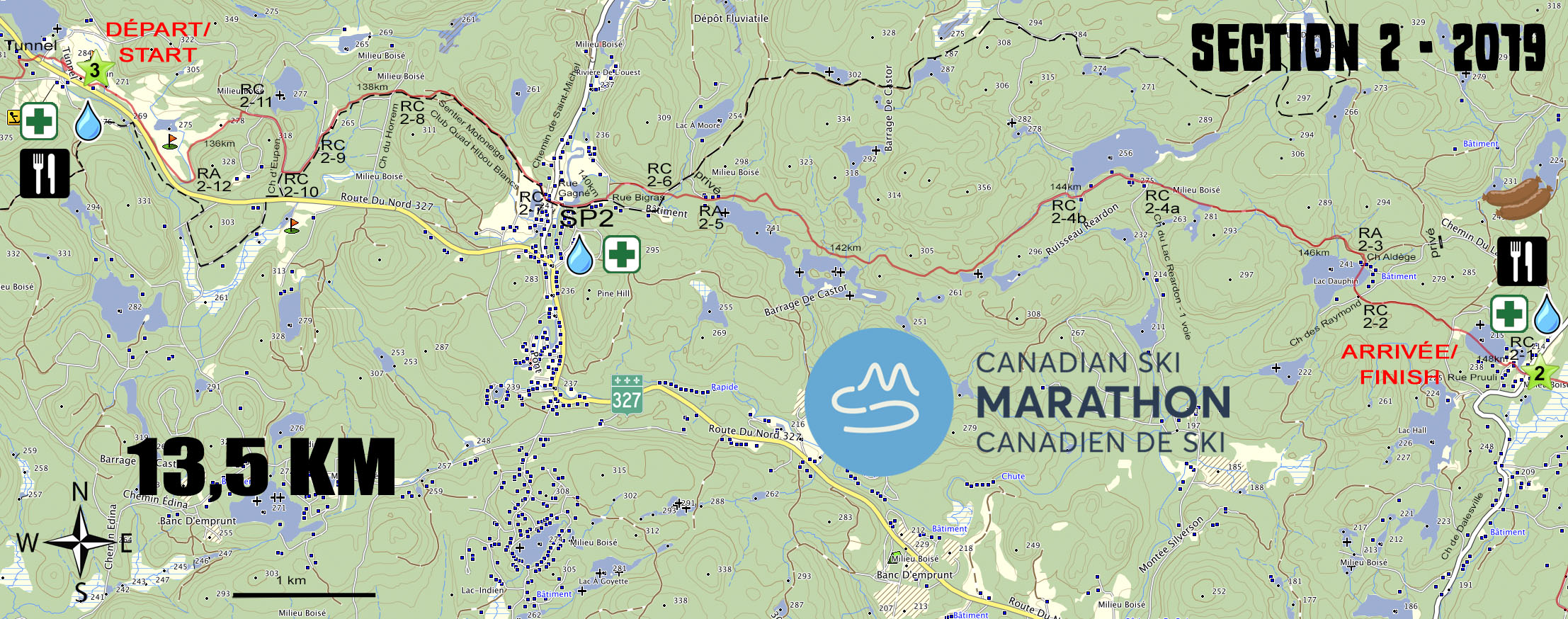 NOTE: There are trail descriptions as well as the maps on the CSM website at https://skimarathon.ca/ but the maps posted here may be more up to date.